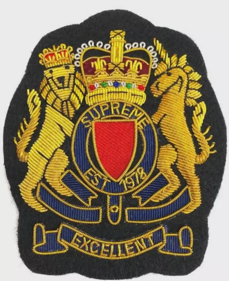 Classic Vintage Hand Embroidered Bullion Wire Blazer Badge , Sew on backing, Pocket Size, Vintage Fashion Patch
