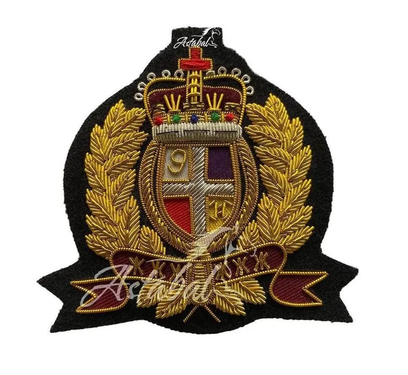 Hand embroidered bullion wire embroidered blazer badge, fashion vintage badge for coat jeans and bags , pocket size, sew on