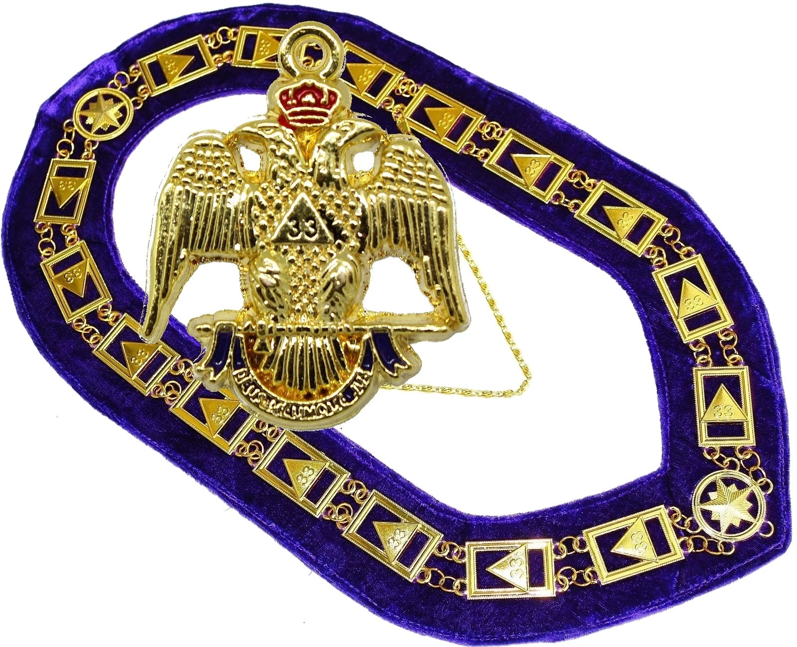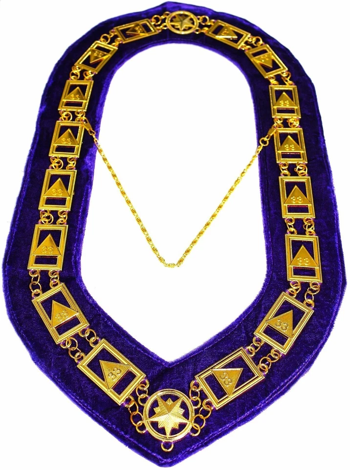 Masonic Regalia 33rd Degree Scottish RITE Golden Metal Chain Collar Purple Backing DMR-1000GP