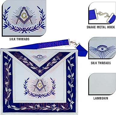 Elevate your Masonic regalia with this exquisite Master Mason Apron. Handcrafted with meticulous attention to detail, this apron features intricate hand embroidery and a luxurious Blue Velvet Border, embodying the rich symbolism and tradition of Freemasonry. Made from 100% Lambskin, this apron ensures durability and a luxurious texture, with the bottom adorned with elegant Blue Silk Threads to enhance its visual appeal. The apron measures a generous 14×16 inches, providing ample coverage while maintaining comfort and mobility during Masonic rituals and ceremonies. Lined with a soft blue fine polyester fabric, it offers superior comfort during extended wear. For added convenience, it includes a pocket for gloves, ensuring practicality and ease of use. Designed with an extendable belt featuring a sturdy metal clip and hook closure, this apron allows for a customizable and secure fit, accommodating various body sizes. Each element of this apron carries deep symbolic significance, honoring the timeless traditions of Freemasonry. It serves as a tangible representation of values such as integrity, fellowship, and enlightenment, making it a cherished symbol of Masonic brotherhood. Perfect for lodge meetings, ceremonial occasions, or as a meaningful gift for a fellow Mason, this Master Mason Apron is a testament to the craftsmanship and heritage of the fraternity. Add this elegant apron to your collection and wear it with pride.