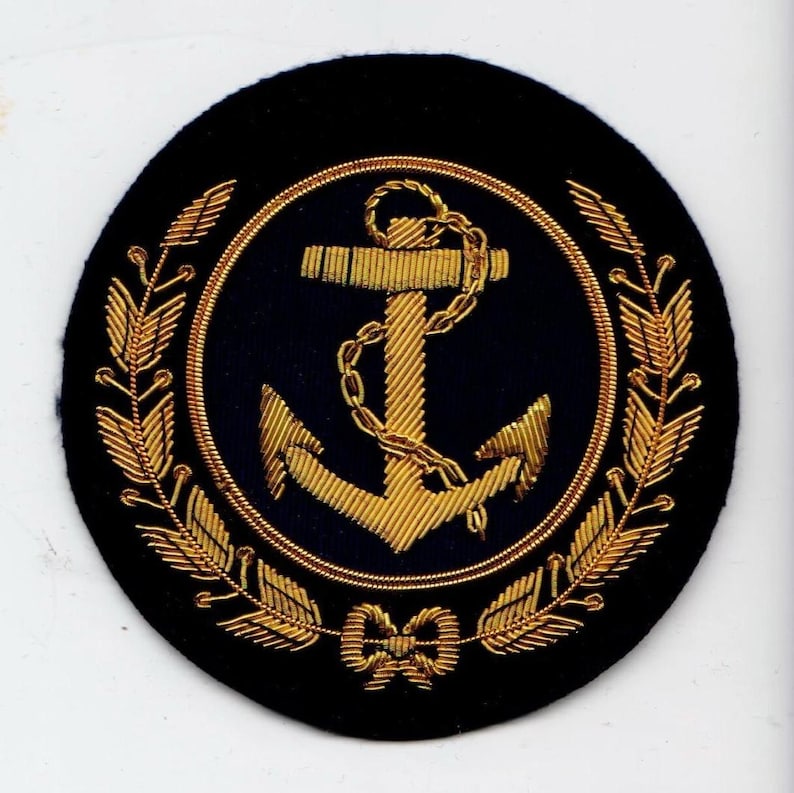 Navy Bullion Wire Hand Embroidered Badge , Sew On , Anchor Patch