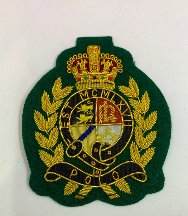 Polo Blazer Badge Bullion Wired Hand Embroidered , Royal Polo, Ralph Lauren Green Background