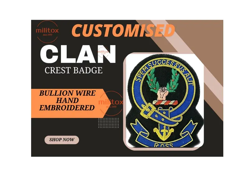 Scottish Clan Crest ,Personalized Clan Crest Badge – Handcrafted Bullion Wire Embroidery, Pocket Size, fast shipping