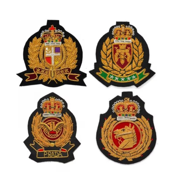 Sew on Vintage Bullion Wire Hand Embroidered Blazer Badge, Pocket size, Royal Vintage patch, Ralph Family Fashion Badge