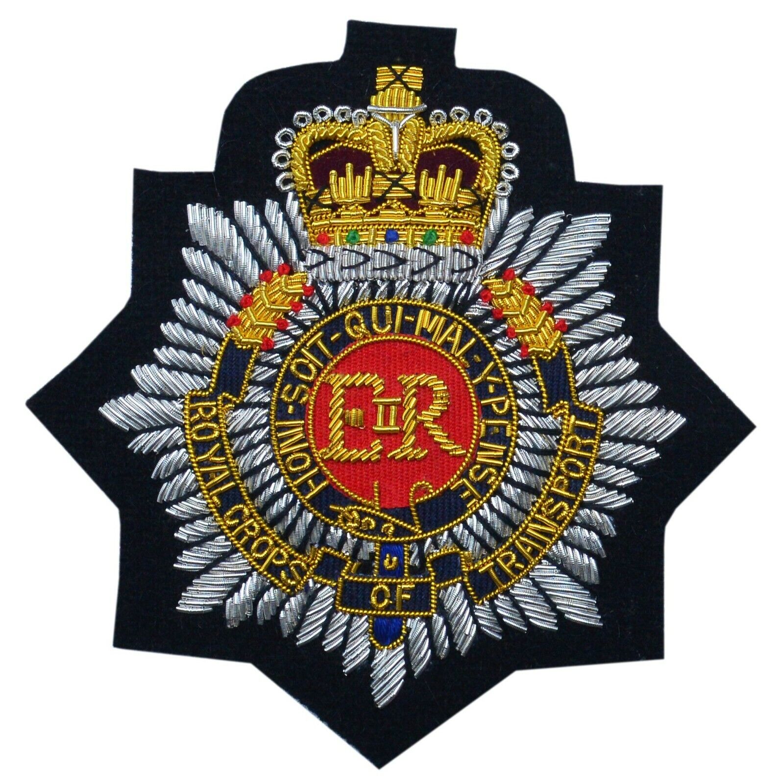 The (RCT) Royal Corps Of Transport Blazer Badge is a finely crafted emblem, intricately designed with bullion wire and hand-made embroidery. It represents the distinguished tradition and service of the Royal Corps Of Transport, typically worn on blazers or uniforms to honor its members’ affiliation and achievements.