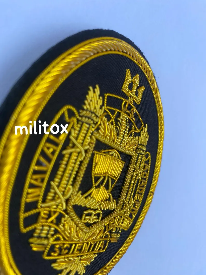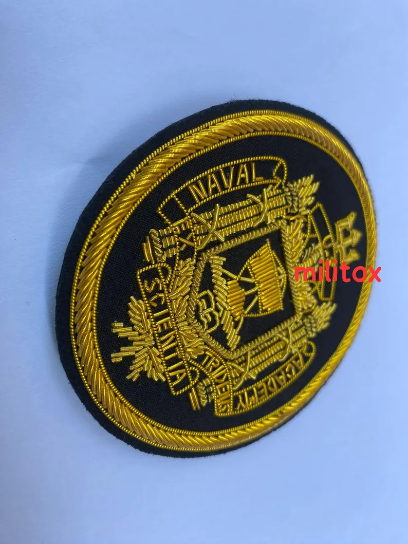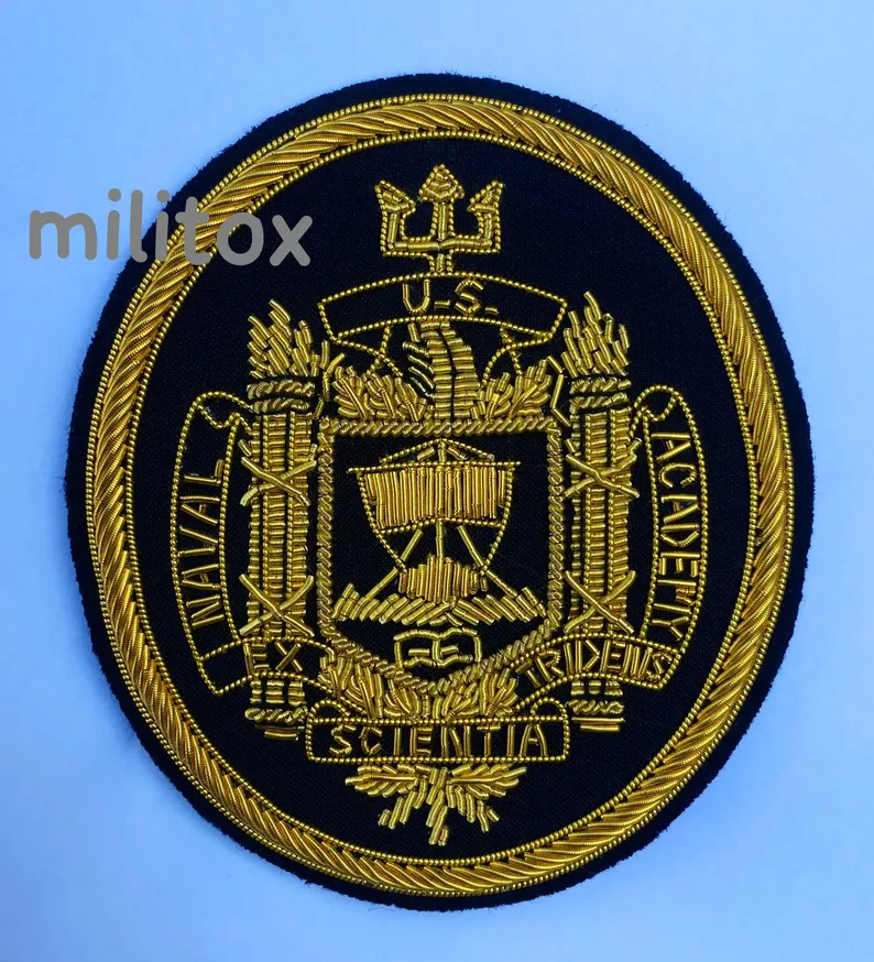 US NAVAL ACADEMY, Navy Seal Hand Embroidered Bullion Wire Badge, Pocket Size, Pins Attachment